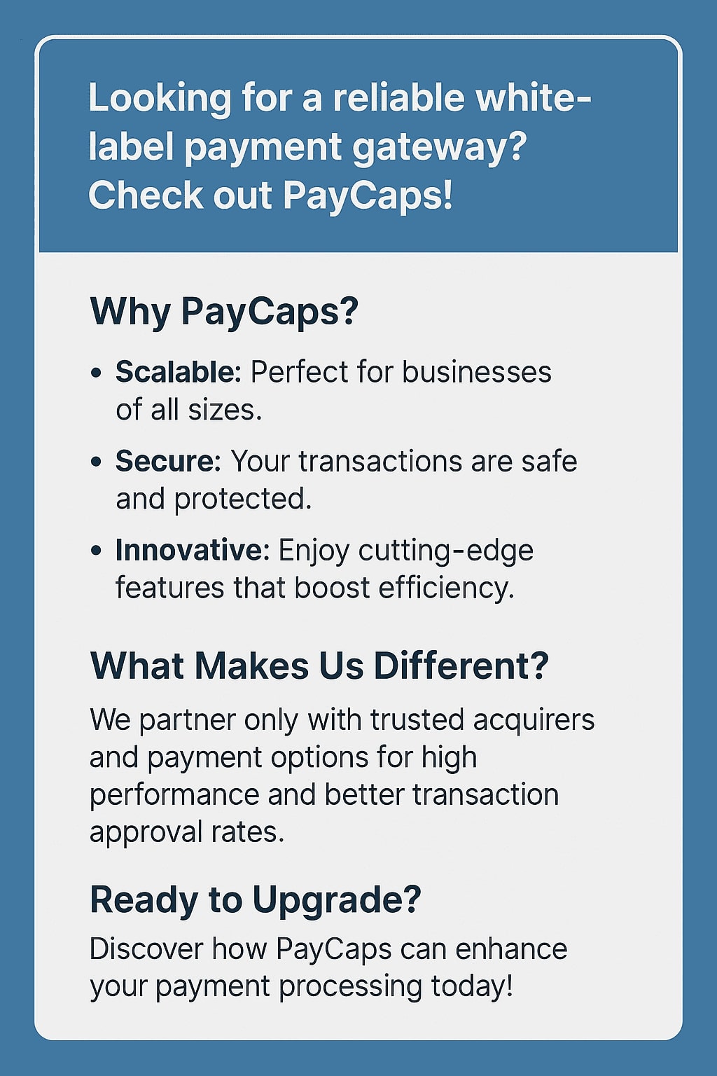 Choosing the right payment gateway is crucial and can not be overlooked for the success of an e-commerce website. A good gateway ensures seamless integration with e-commerce platforms such as Shopify, WooCommerce, and more. It should also support multiple currencies and local payment methods, show Transparent Pricing and avoid hiding charges, be fraud protected, and keep customer data safe. One such tool with all these Qualities is PayCaps. It is an ideal solution for e-commerce businesses who seek a secure and scalable payment gateway, with 80+ payment methods, multi-currency support, fast onboarding, and real-time fraud prevention. Its white-label model also allows you to brand the gateway as your own—perfect for growing businesses.